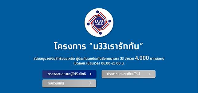 Feb 21, 2021 · เข้าได้แล้วwww.ม33เรารักกัน.com กดลงทะเบียนรับสิทธิ เผยหลักเกณฑ์ เงื่อนไข ต้องยินยอมก่อนสมัครรับสิทธิเยียวยาโควิด 4,000บาท อัปเดต ลงทะเบียนคนละครึ่งเฟส 3 รอจันทร์นี้ ม33เรารักกัน เงินเข้า 1,000 บาท May 11, 2021 · ครม. รัฐบาลประกาศเพิ่มเงินเยียวยาประชาชนผ่านโครงการ 'เราชนะ' อีกคนละ 2,000 บาท โดยผู้มีสิทธิเราชนะ. Jun 09, 2021 · โฆษกรัฐบาล เผยโครงการ "เราชนะ" และ "ม33 เรารักกัน" มีมูลค่าการใช้จ่ายหมุนเวียนในระบบเศรษฐกิจแล้วเกือบ 300,000 ล้านบาท จากการใช้จ่ายของประชาชน. 12 พฤษภาคม 2564 เวลา 06.00 น. May 12, 2021 · ม33เรารักกัน / อัพเดทล่าสุด : Mar 27, 2021 · โค้งสุดท้ายของการสมัครเป็น 'ร้านค้า' รับเงิน 'ม33 เรารักกัน' 'เราชนะ' 'คนละครึ่ง' ก่อน 31 มี.ค.